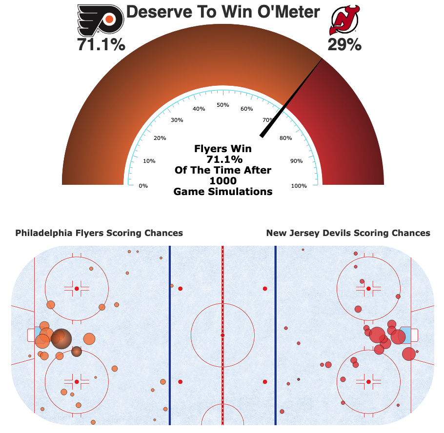 There are also fan implications. Advanced analytics metrics are consistently being discussed during broadcasts, enhancing fan engagement and understanding of the sport. Moneypuck’s “Deserve To Win O’Meter” Figure 2 is a fun graphical way to show which team “deserved” to win the game, regardless of the actual score based on expected goals. It’s interesting that teams that finish the game at above 50% on the meter have historically won 64% of games [9].