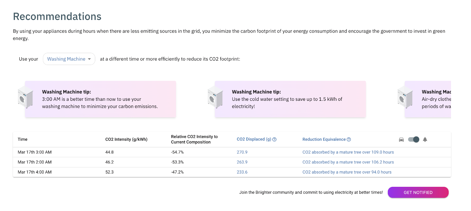 Our project consisted of a scalable recommendation engine built with Google Cloud Functions, integrating live electricity data and emissions factors stored in Firebase, and a frontend built in React/Next.js.